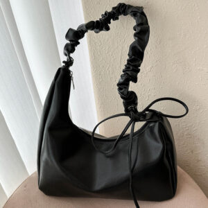Niche Cowhide Braided Fashion Armpit Bag Black